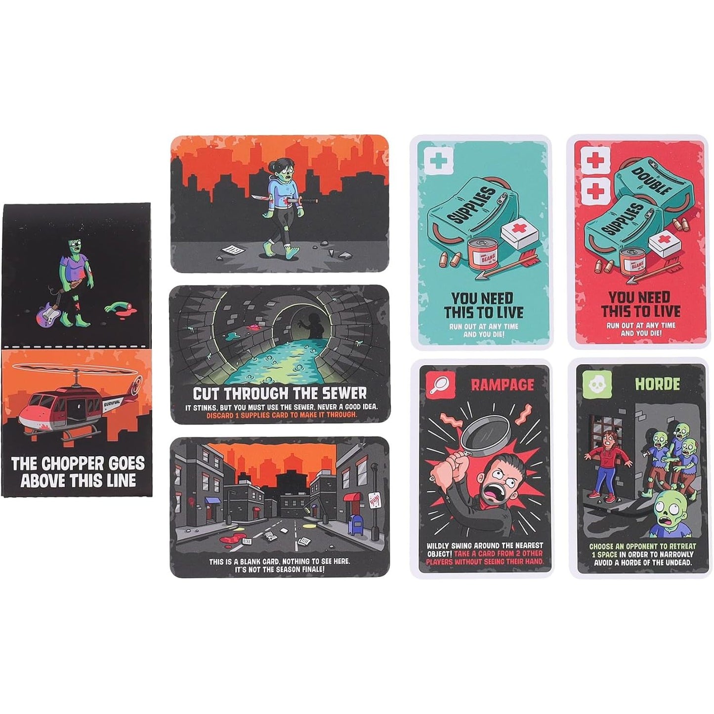 - ☢️EASY TO PLAY – Use your Action cards to defend, scheme, and rampage your way to success. But remember: if you run out of supplies or get bitten at any point, you turn into a zombie, and your sole purpose is to stop the remaining survivors from reaching that chopper.