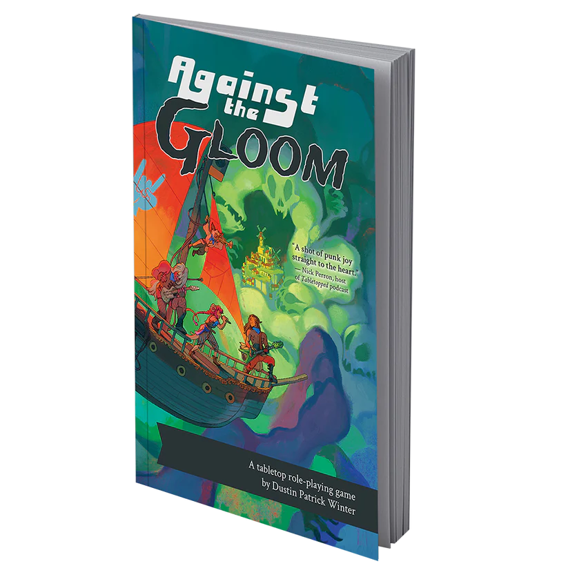 In Against the Gloom, players take on the roles of punk pirate troubadours sailing across a vast and dangerous void—the Gloom—aboard a ramshackle ship propelled by the power of song. Use your character's sonic powers to push back the Gloom as it seeks to obliterate any pockets of community that dare to resist it. Build your story one gig at a time.