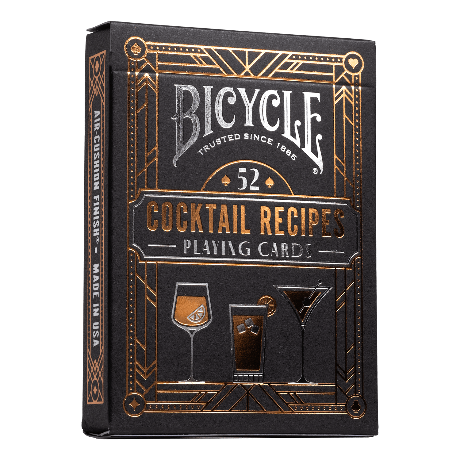 Each of the face cards feature a time-honored drink recipe to help you create that perfect drink from the golden age of the cocktail party.