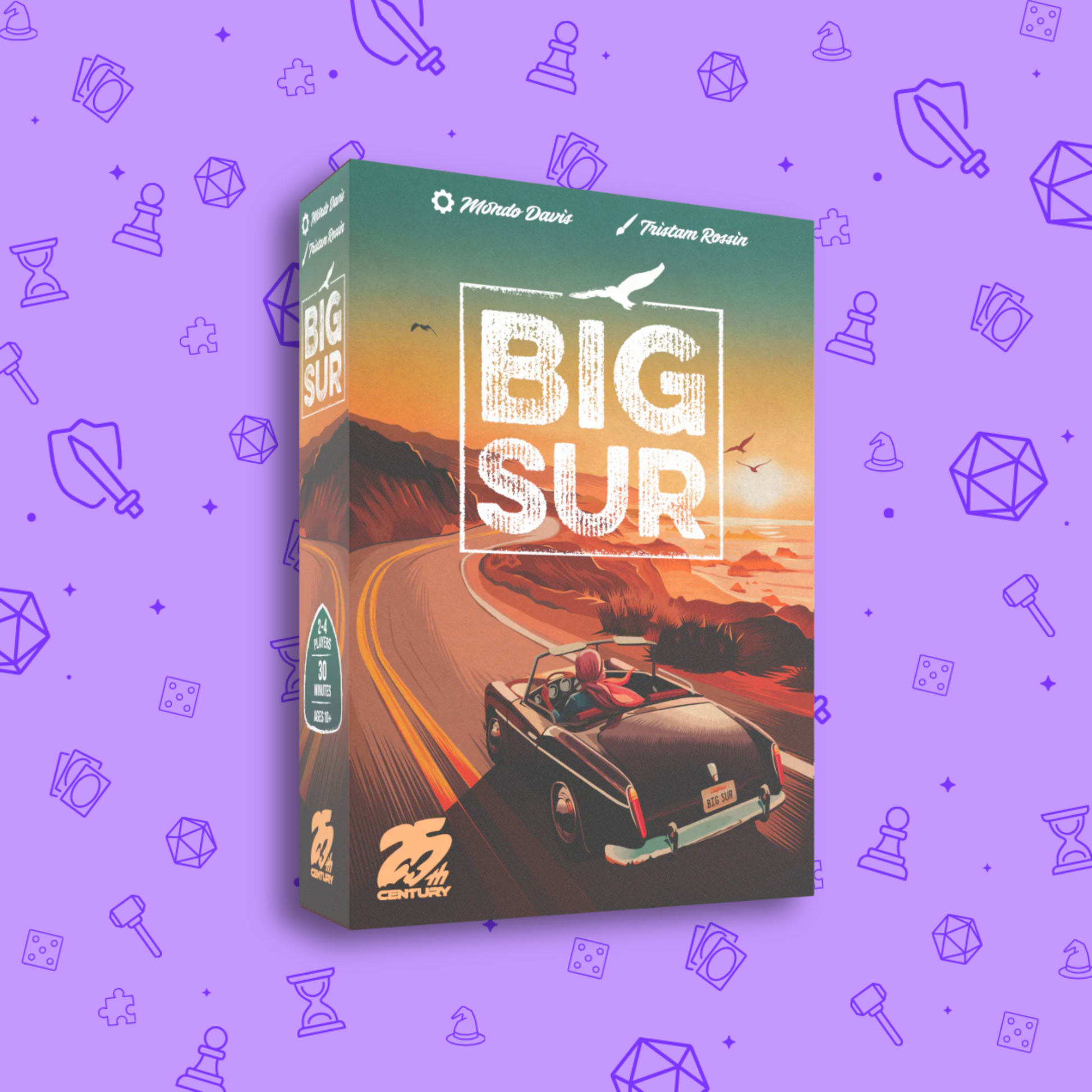 In Big Sur, players draft cards to use them either as resources to build new road sections or as the road sections themselves. Your linear path of cards will score for connecting terrain types and meeting other conditions. You can also add notable landmarks to your highway for other unique scoring conditions; these landmarks are based on actual scenic lookouts and locations on Big Sur.