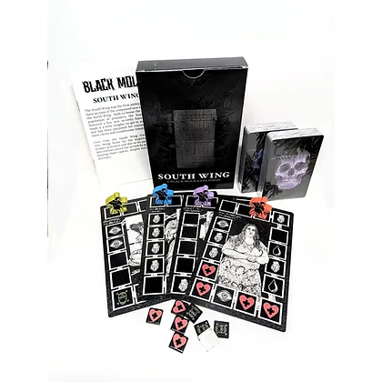 The women's ward in the South Wing has been unbolted! Add 4 new prisoners with 4 meeples, Prisoner cards, decision decks, rules, and medicine/poison tokens.