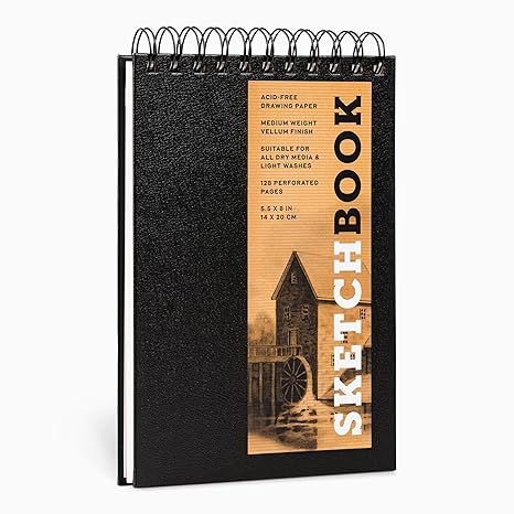 - Classic black cover spiral-bound sketchbook for drawing on the go—or starting an art journal