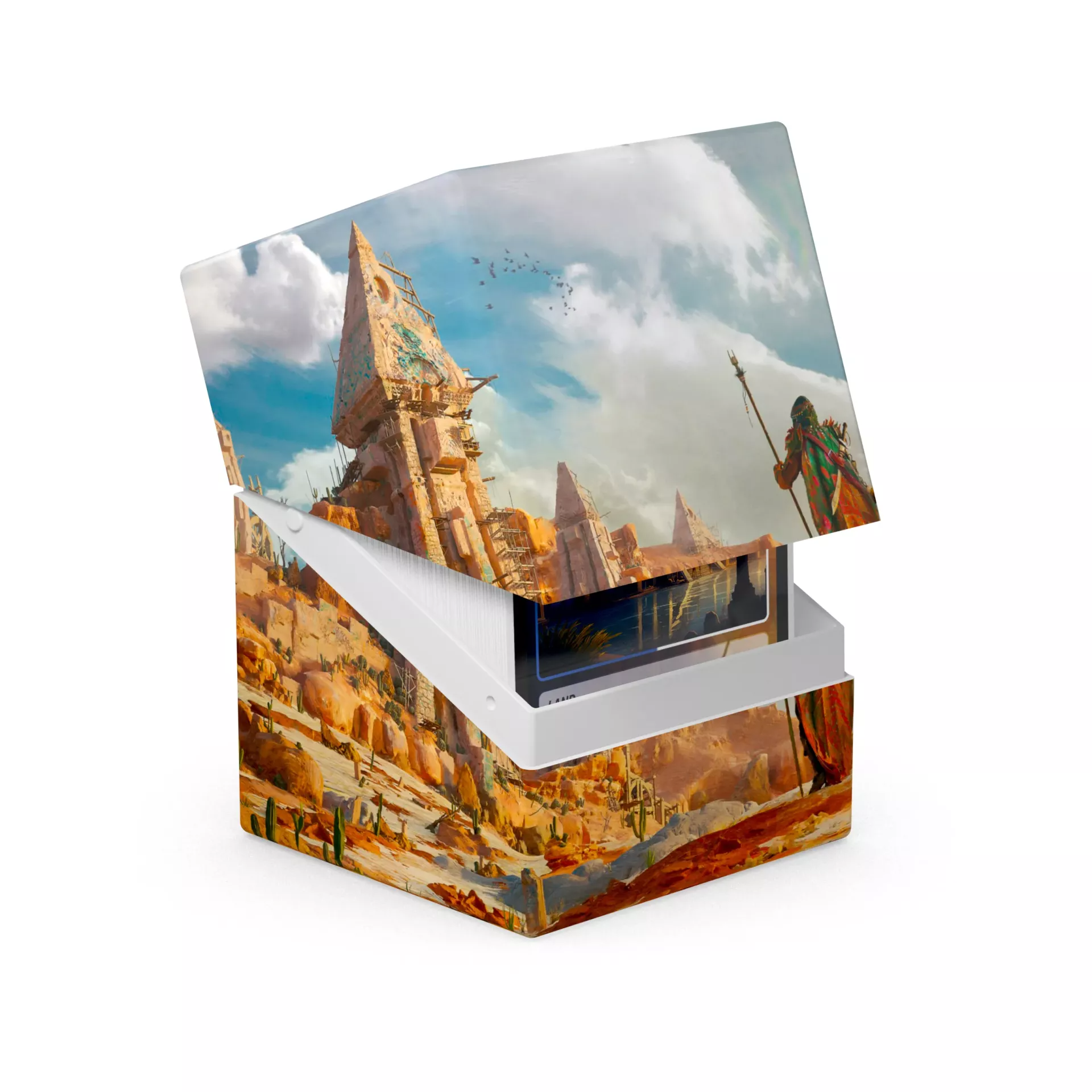 The motifs of Artist Edition #2 were created by artist Mario Renaud and are not only available as RTE Boulder 100+, but also as a Play-Mat and Collector's Album'n'Case. The deck box offers space for 100 (double-sleeved) or 120 (single-sleeved) cards from games such as Magic: The Gathering, Pokémon, or Lorcana. As part of our Return to Earth series, the Boulder is made from 78% renewable resources. The deck box is made in Germany and features a durable and vibrant full colour print.