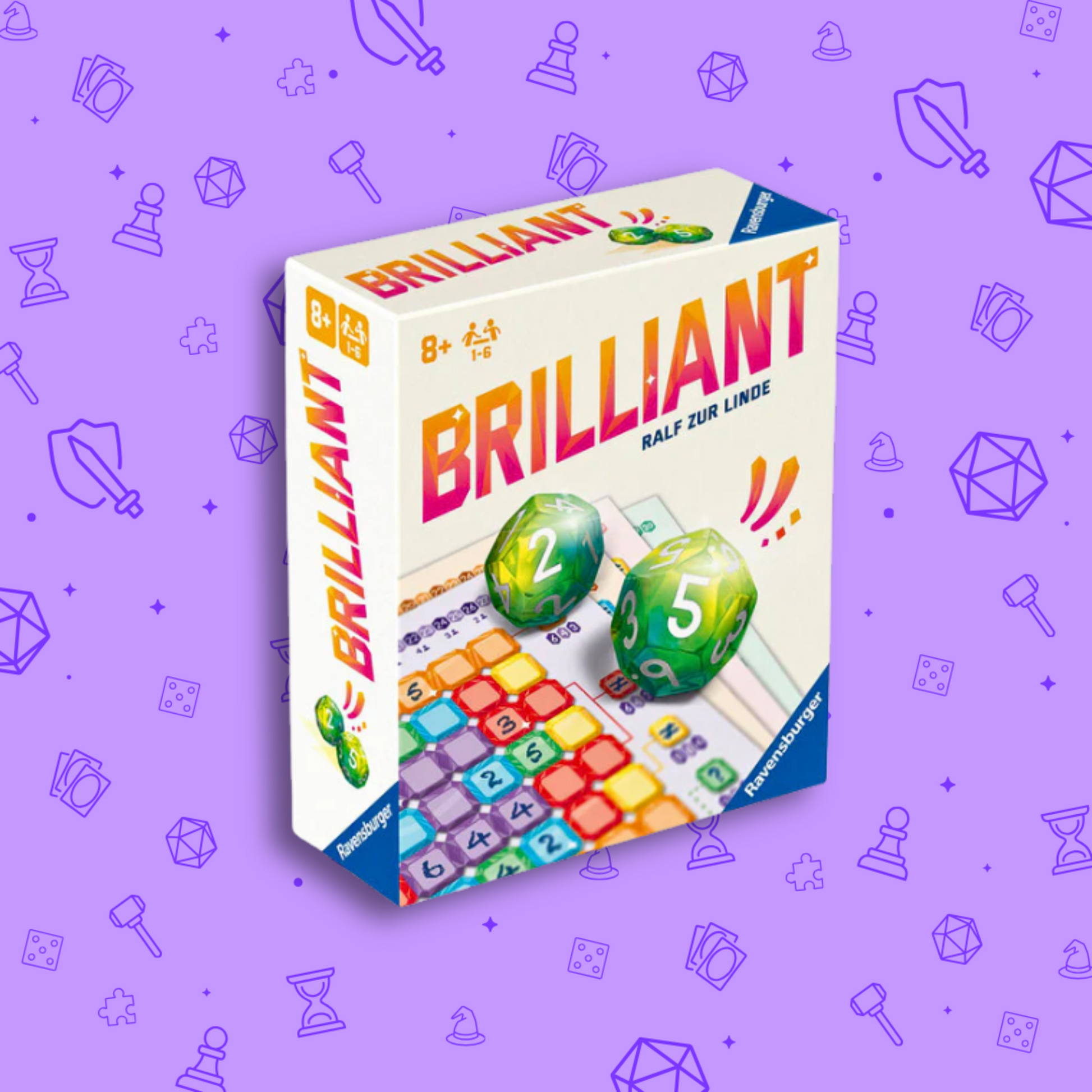 Grab the brilliants! And as far as possible in front of the others! Everyone plays at the same time and it's brilliantly simple and simply brilliant! "Brilliant" is a roll & write game with a very special highlight: of two diced numbers, one of the two must be entered next to the other (already entered number). This is quickly understood and played quickly as everyone plays at the same time. But it gets more and more tricky round after round, as it always gets fuller on your block sheets! Whoever completes the best fields first wins the game.