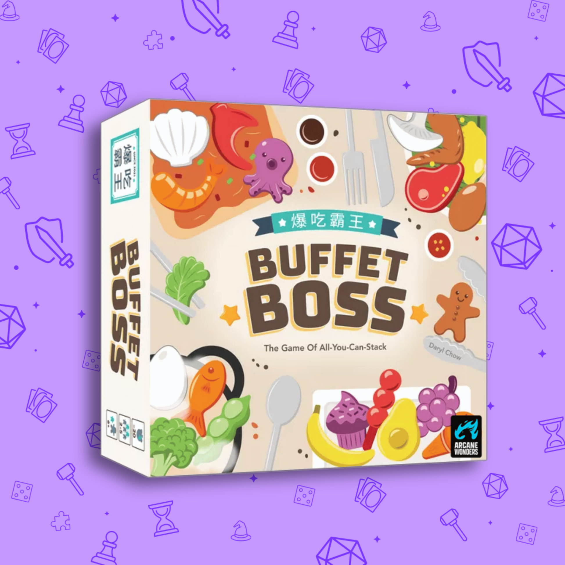Buffet Boss delivers up a delicious mix of light strategy and dexterity in this stacking game for the whole family. In Buffet Boss, pick your food from the buffet and gain points by stacking food onto your plate. But beware - the food with the tastiest point values are also the hardest to stack! Players will also have Character cards that give them bonus points for stacking specific types of food.