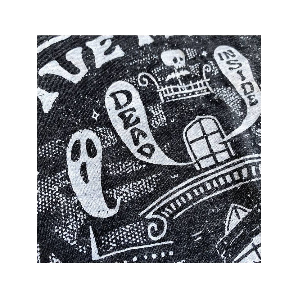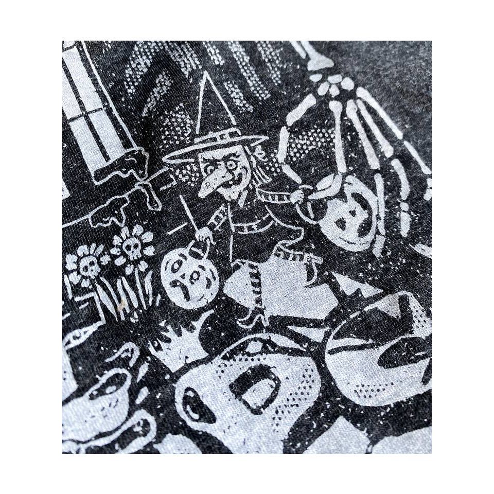 Silk screened by hand on a unisex heather black crew neck tee with the Dowdy Studio logo on the back neck. The white illustration is printed on a tri- blended 50% polyester, 25% rayon, 25% cotton pre-washed tee. These tees are super soft and awesome.