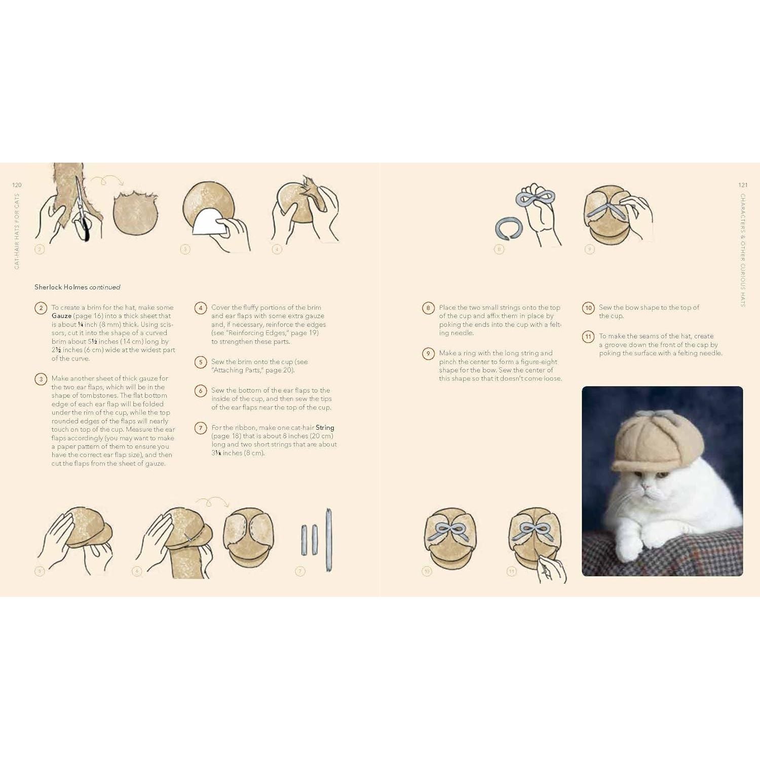 Cat-Hair Hats for Cats contains step-by-step instructions for constructing twenty-five stylish hats, along with advice on grooming and photographing your cats. And with tips from popular Instagrammers rojiman and umatan, you’ll be designing your own custom cat-hair creations in no time.