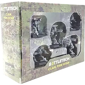 Unleash the Clan Fire Star on your enemies! Warhawk, Nova Cat, Cougar, Kit Fix, and Fire Moth-no assembly required-along with five MechWarrior pilot cards and five Alpha Strike cards. Perfect for BattleTech and Alpha Strike action!