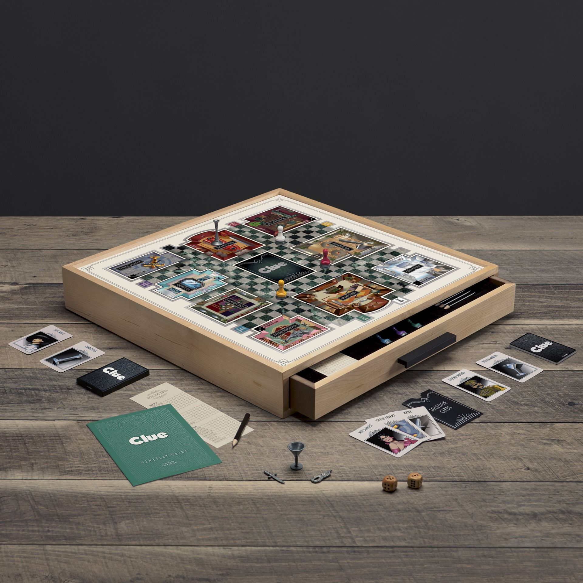 This Clue Luxe Edition combines beauty and elegance with a twist on the classic detective game. Swing into the roaring 20s while you unlock the secrets of Clue at the Roaring Ritzy Hotel! With lush Art Deco illustrations, this gorgeous edition features a solid maple wood cabinet with an integrated storage drawer and die-cast metal drawer pull. The striking foil-stamped Clue game board is built into the cabinet. Richness abounds in this 20s-themed set with premium components, including wood and die-cast metal tokens, metal weapons, foil-stamped solution envelope, and a boxed set of illustrated Clue cards.