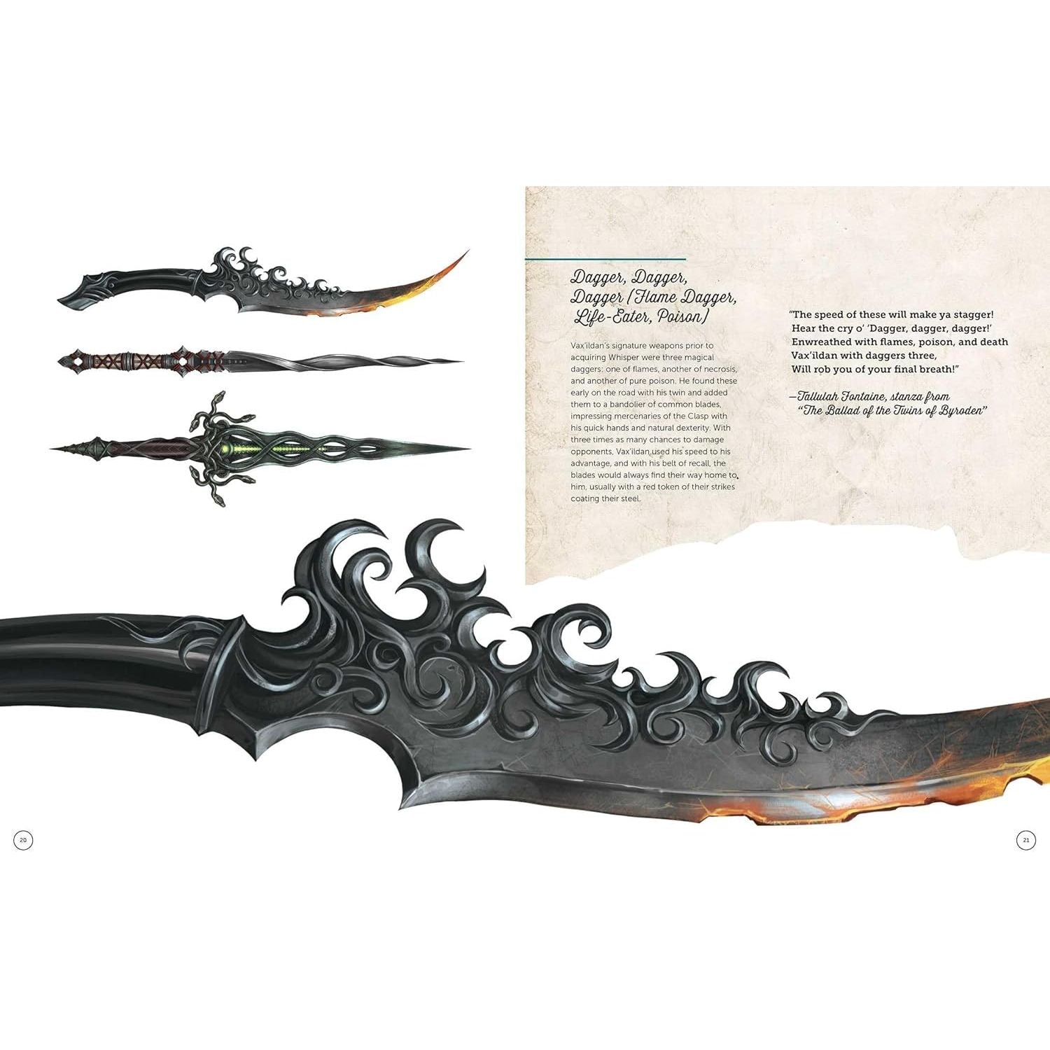 STUNNING ORIGINAL ART: Includes many never-before-seen pieces of beautiful, detailed art depicting the compelling, and deadly, weapons wielded by Vox Machina and Mighty Nein, as well as their iconic armor, outfits, and items.