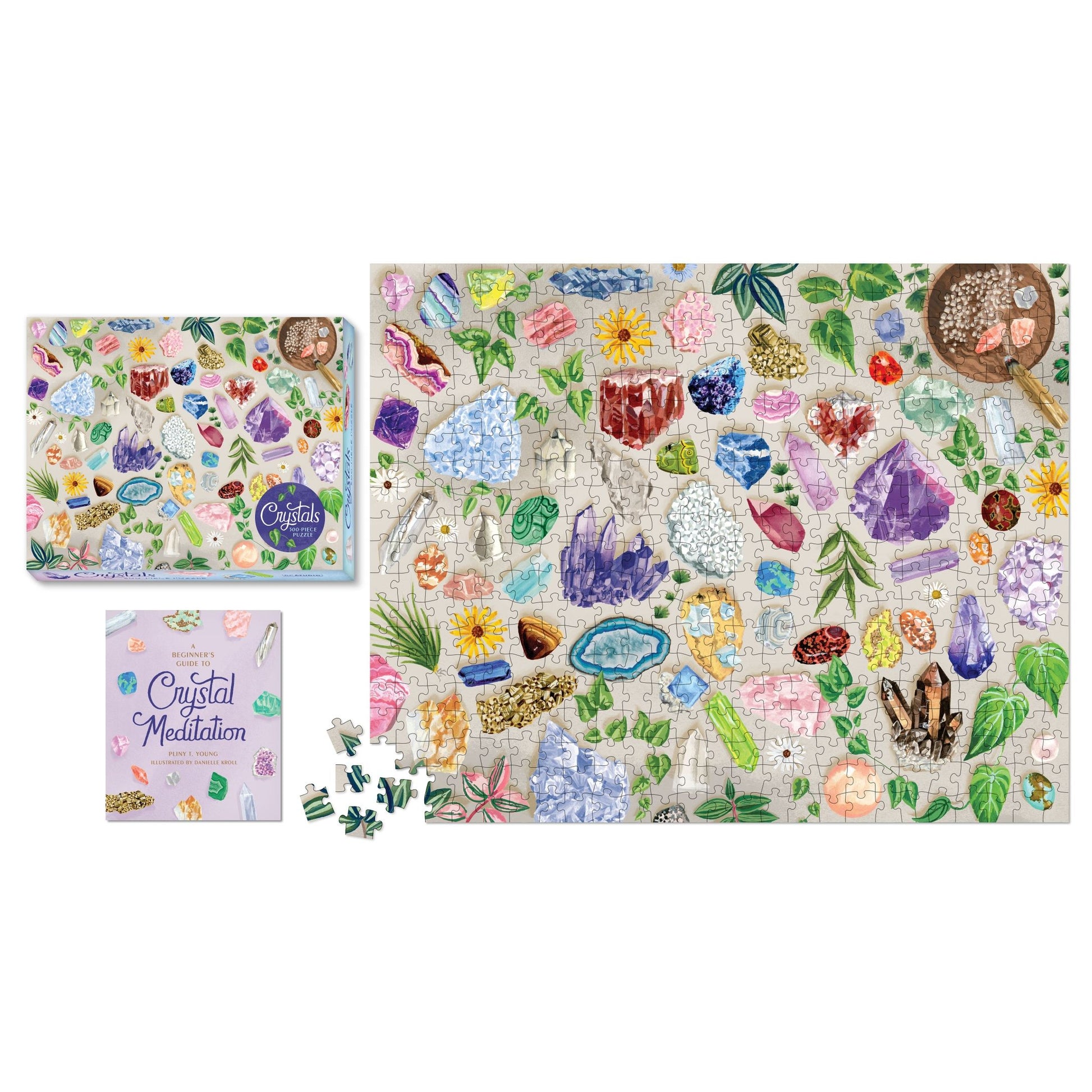 Explore the essential qualities and magical properties of crystals and gems in this deluxe 500-piece puzzle and book set.