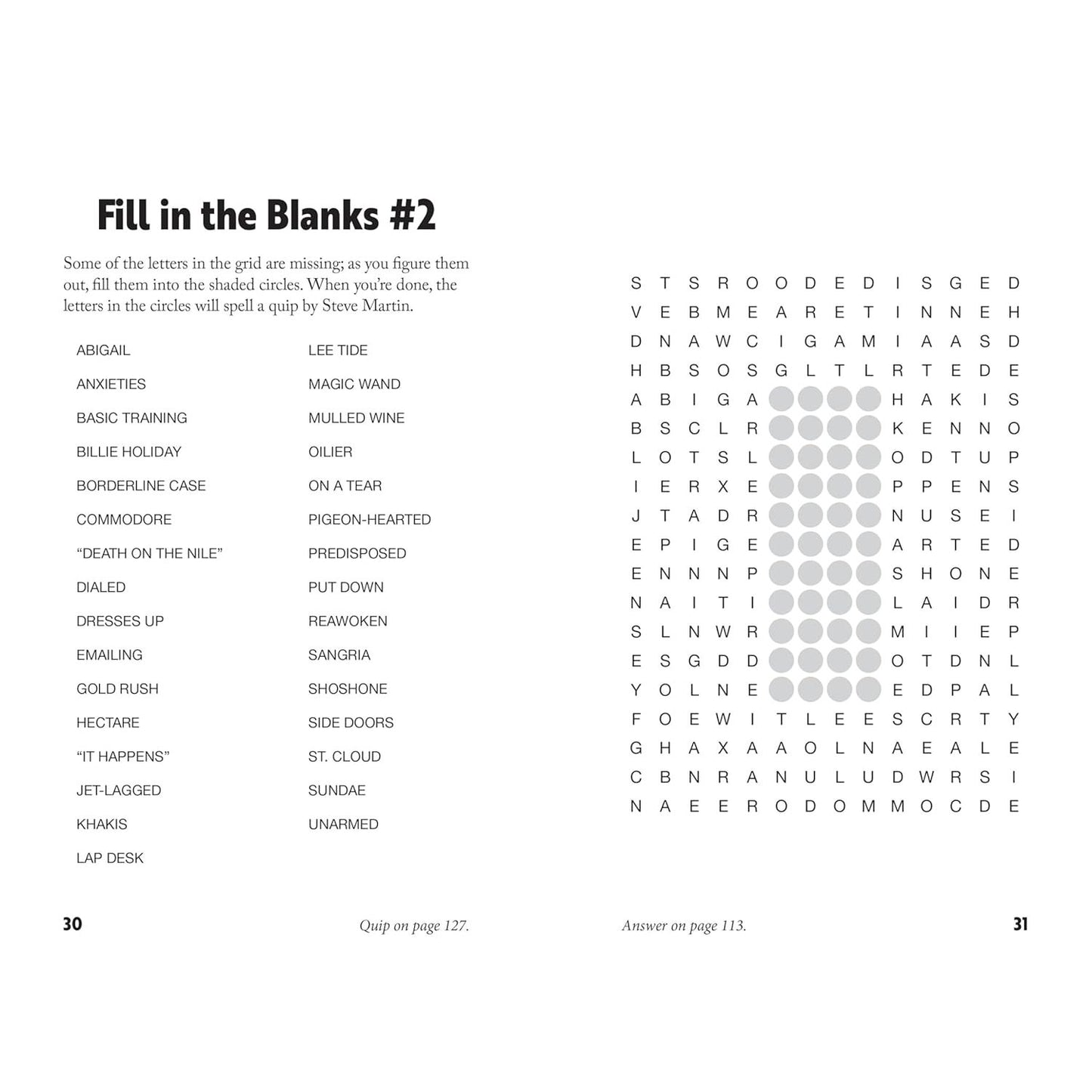 This new collection of word searches offers a wide variety of twists on standard word searches. Some puzzles might have symbols included in the grid (like stars that represent the letters S-T-A-R), some might feature entries that wind through the grid in zigzag lines, some might replace the word list with a set of clues to solve—anything goes! But at heart, the puzzles are still accessible, fun word searches.