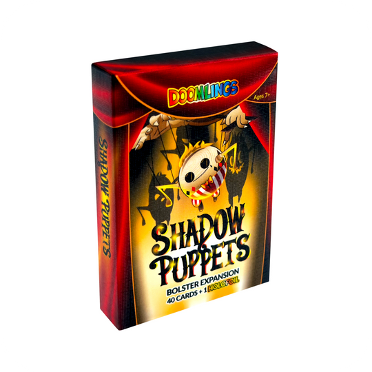 Shadow Puppets is the very first Bolster Expansion for Doomlings—introducing 40 new cards and four haunting new species of Doomlings: Deeplings, Glitterlings, Moonlings, and Fuzelings.