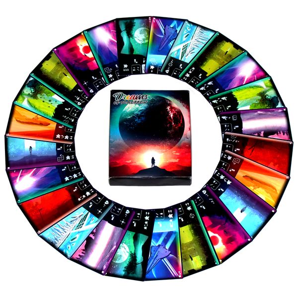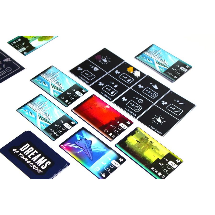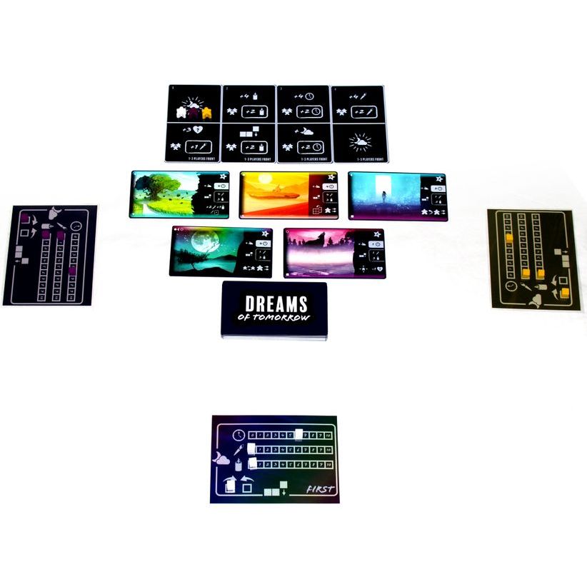 In Dreams of Tomorrow, you are a Dream Engineer — a visionary from a dystopian future, weaving dreams and sending them back through time to reshape humanity’s fate. Use a shifting rondel to collect dream fragments, then assemble them into powerful sequences that can both inspire the past and unlock special abilities. The longer and more interconnected your dream, the more points it’s worth — but don’t forget: other players can disrupt your plans. With elegant set collection, tactical rondel movement, and a futuristic tone of hopeful urgency, Dreams of Tomorrow is a compact but layered experience of speculative strategy.