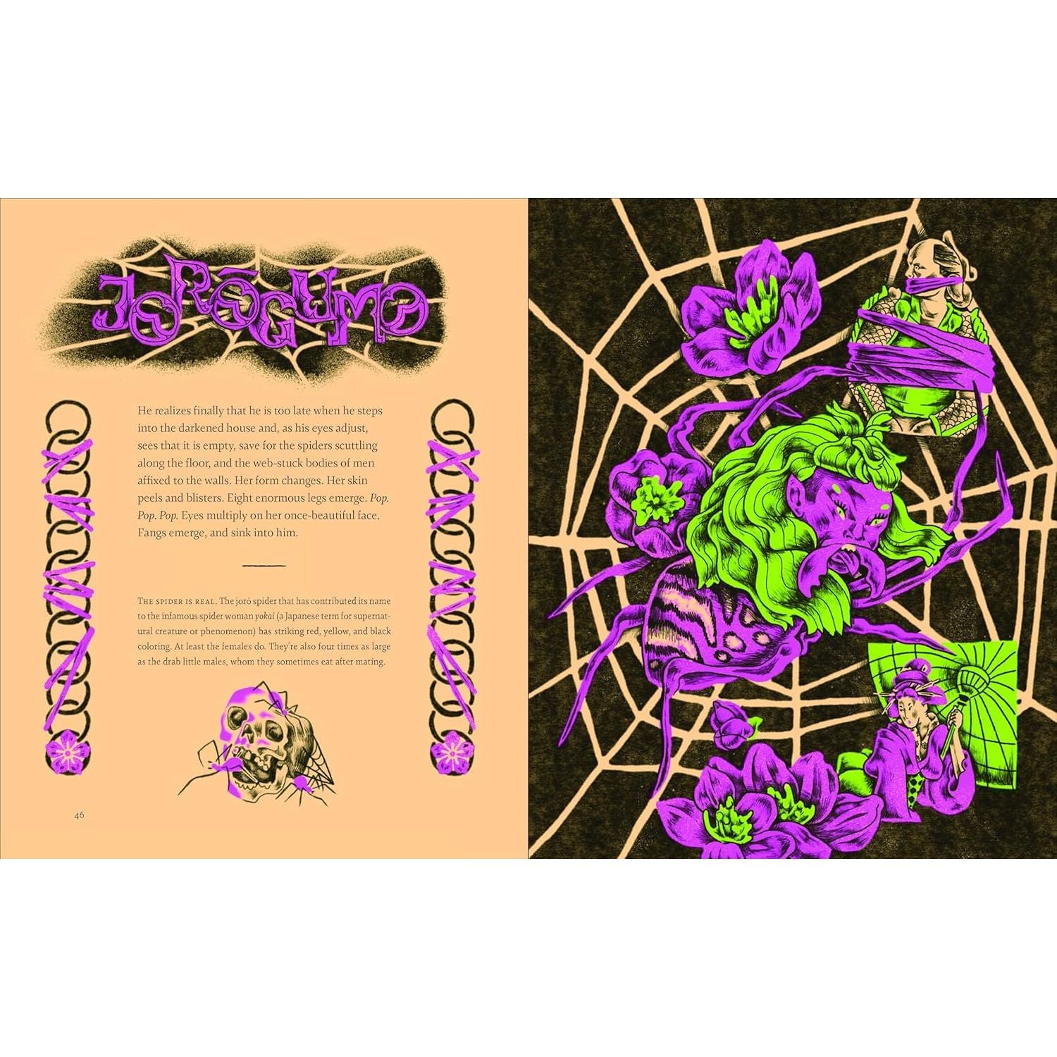 GORGEOUSLY ILLUSTRATED BOOK: Ricardo Diseño’s signature style brings each of the more than 30 entries to frightening life with a knockout full-page image, hand-illustrated border design elements, and a vivid spot illustration.