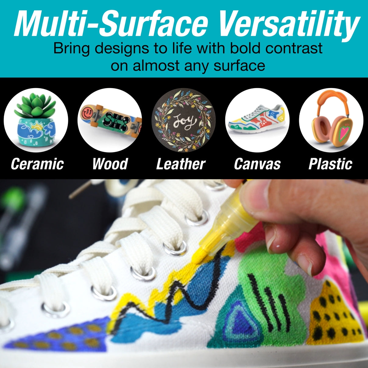 Works on a variety of surfaces: acrylic, plastic, glass, metal, leather, wood, canvas and paper with vibrant, permanent results. Enjoy rich, opaque colors that deliver professional results every time, whether you're creating fine art, decorating objects, or personalizing gifts.