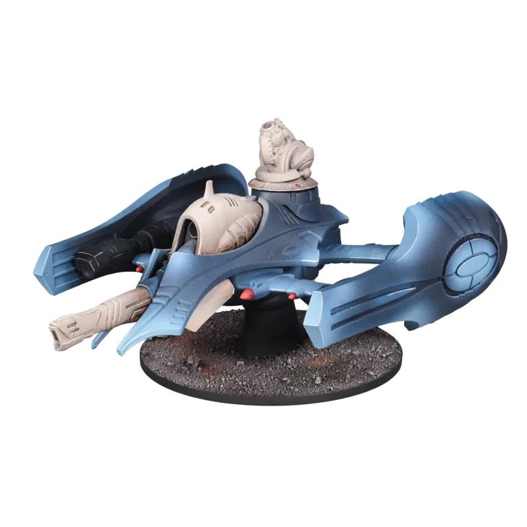 Support for Asterian troops is often provided by large, remotely piloted drones. Based around the same design, these are outfitted to serve different roles on the battlefield. Escort drones provide covering fire for advancing troops, and the feared Assassin drones excel in pin-point attacks against armoured targets.
