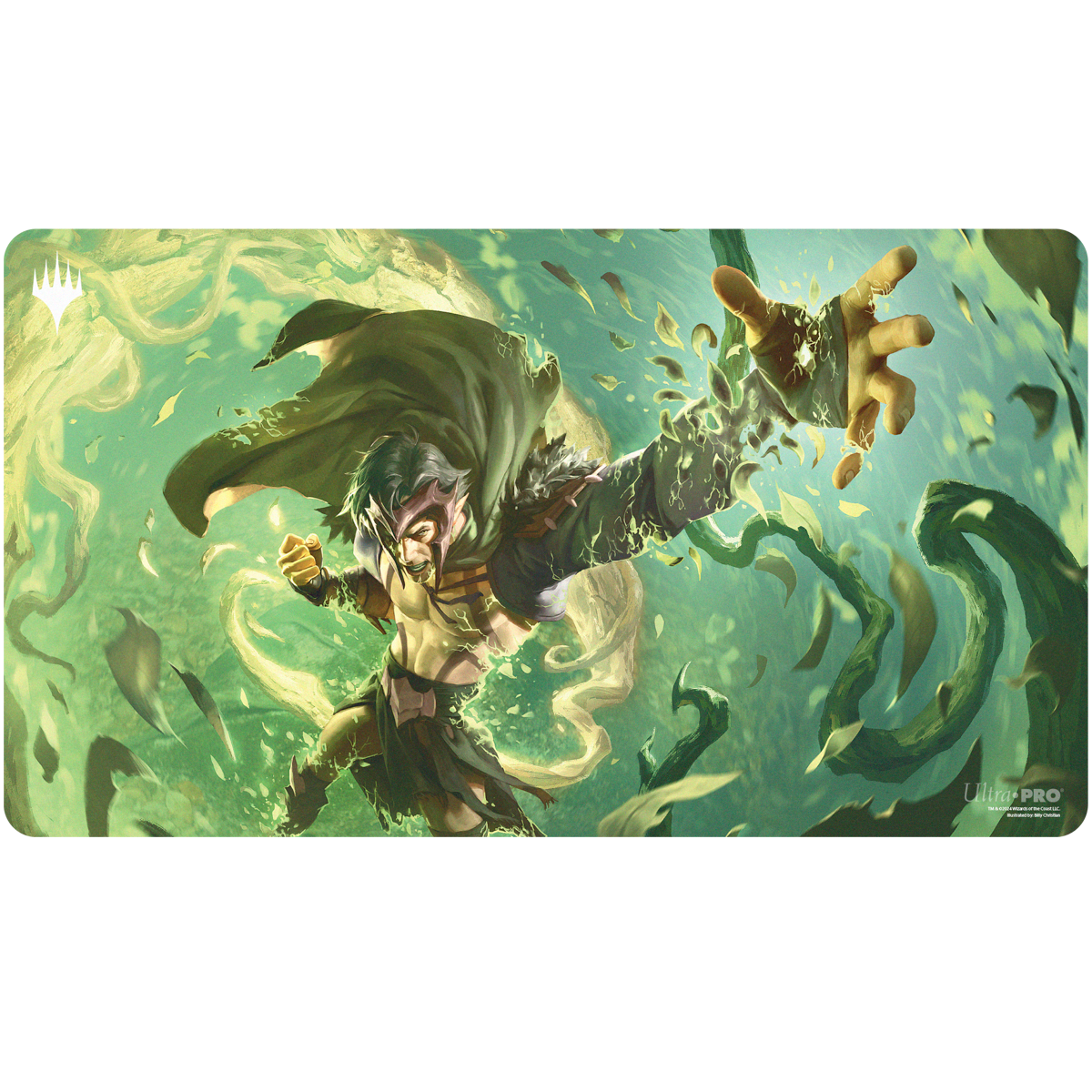 Playmats feature popular Magic: The Gathering artwork. Made with a soft fabric top to reduce damage to cards during play and a non-slip rubber backing to keep the playmat from shifting during use, playmats enhance the gameplay experience. With dimensions of approximately 24 in. x 13.5 in., a playmat also makes an excellent oversize mousepad for home or office.