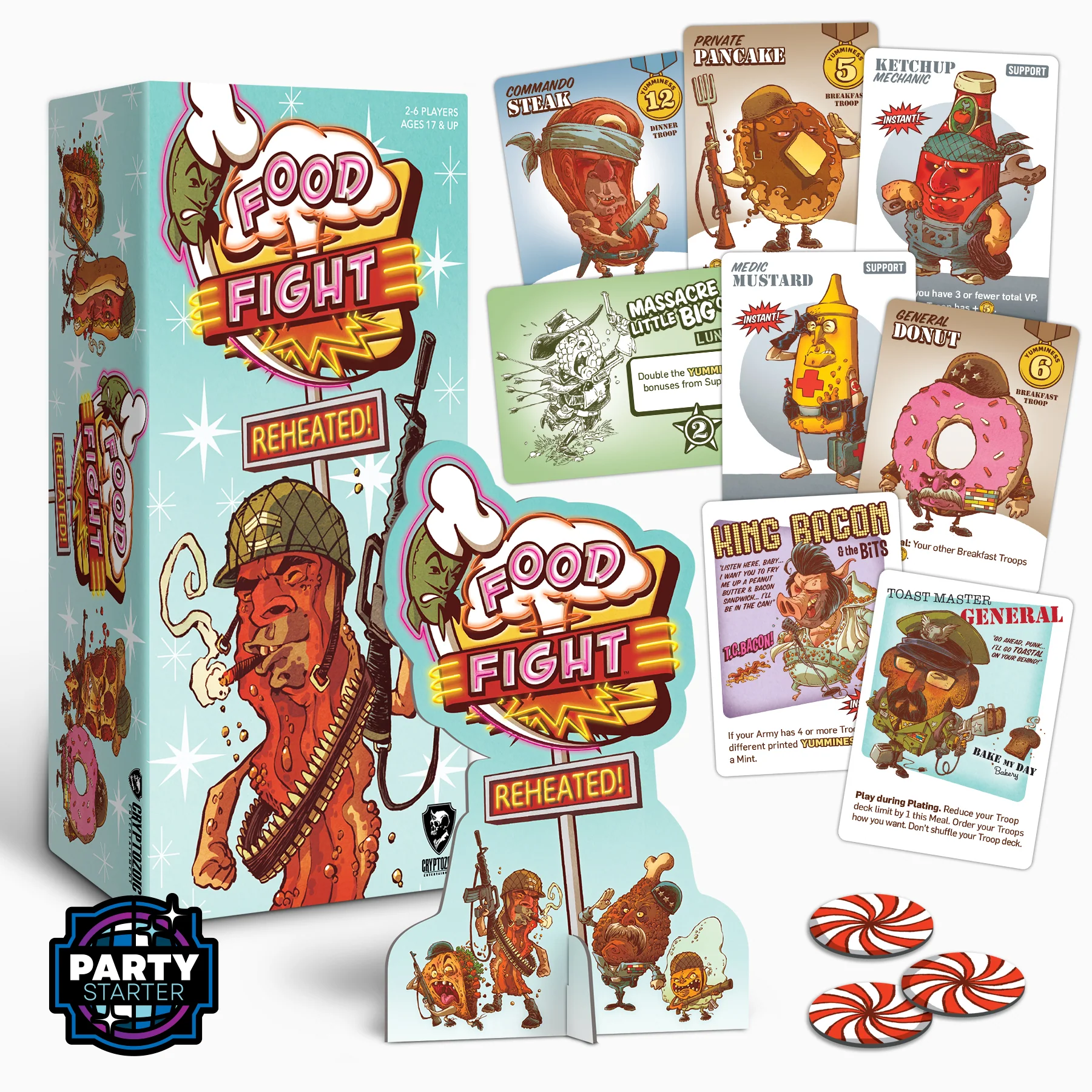 This reheated version of Food Fight keeps much of the core game flow from the original, but condenses the game to three rounds for a more balanced mealtime experience, and pits all players against each other every round. With this increased competition, every serving counts toward ultimate victory, even if the meal is lost.