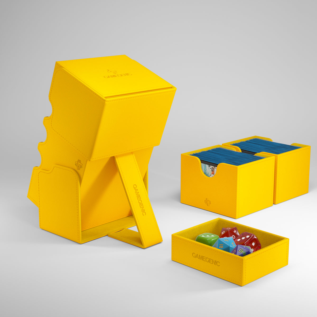 Our Stronghold 200+ in an exclusive extra-large version! It holds 200 regular double-sleeved cards and has extra space for additional tokens, or it perfectly fits 2 Commander** Decks in thicker inner sleeves. Moreover, the accessories drawer is perfect for dice, other small items, and even additional sleeved cards.