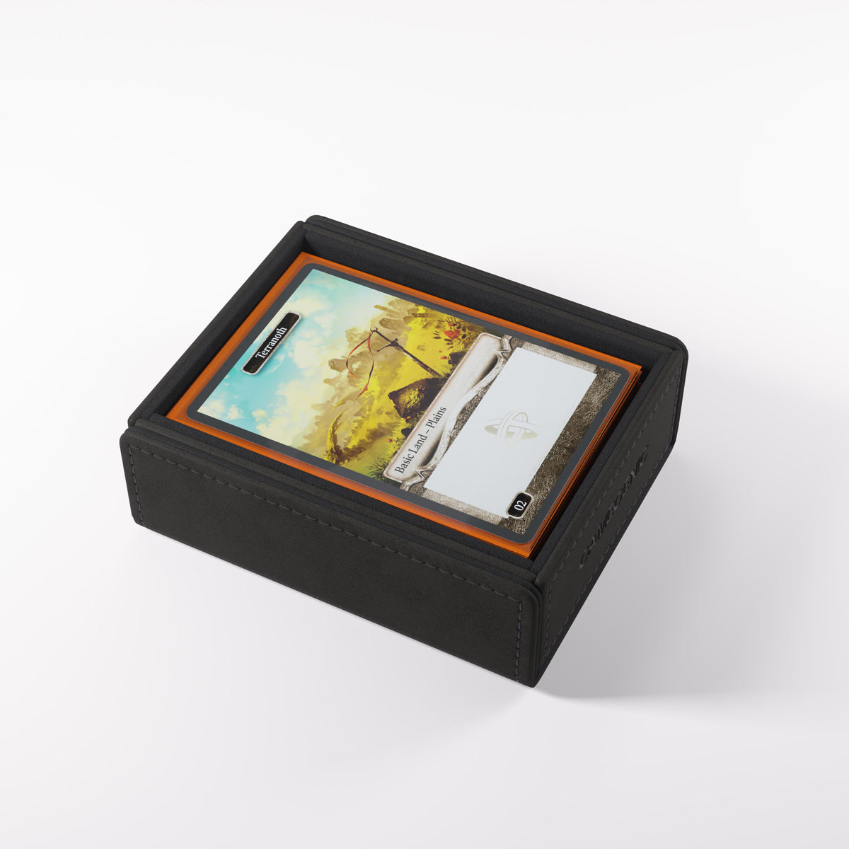 Safely store your most precious tokens, cards, or dice in this elegant premium token box! The Token Keep features Gamegenic’s signature “Convertible System”: the removable cover clips onto the bottom, saving precious space on the gaming table when opened.