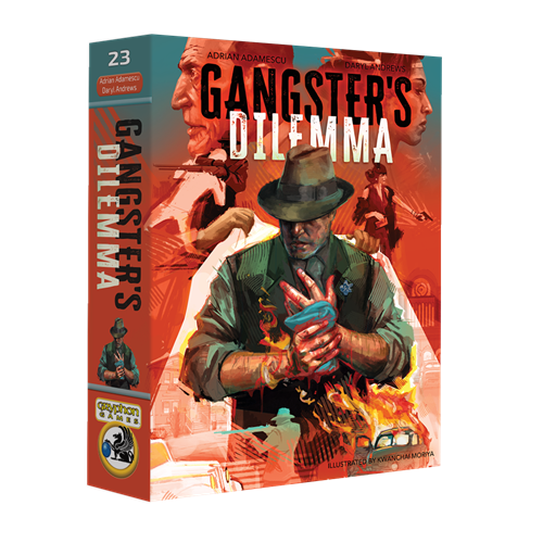 In Gangster's Dilemma, you play a gangster eager to satisfy the Mob Boss' demands. Each round, you will secretly choose to loot one of the city's hot spots, in hopes of eluding the cops, avoiding other gangsters, and grabbing crates, art, jewels, gin, and cash when possible. But the cops are on patrol at all times and they randomly search those same hot spots. If caught in the presence of another gangster, do you pay bribes to the cops, stay silent, or rat out your fellow gangsters? What a dilemma!