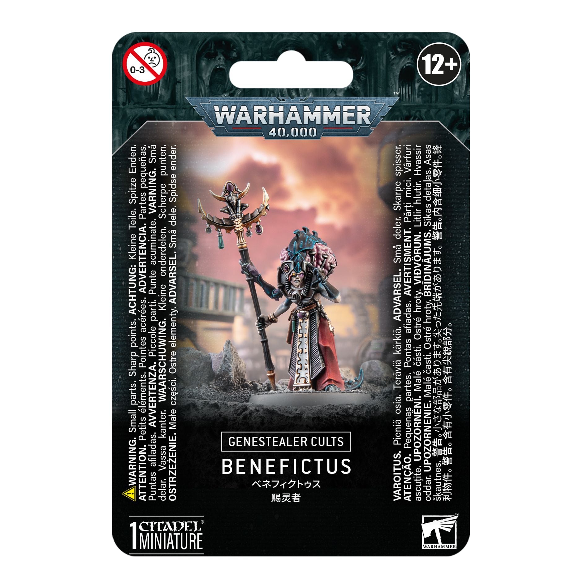 This multipart plastic kit builds one Benefictus miniature, a powerful psyker and leader for Genestealer Cults armies in games of Warhammer 40,000. Blast apart your foes with the focused power of the Hive Mind, and inspire your fellow cultists to even greater acts.