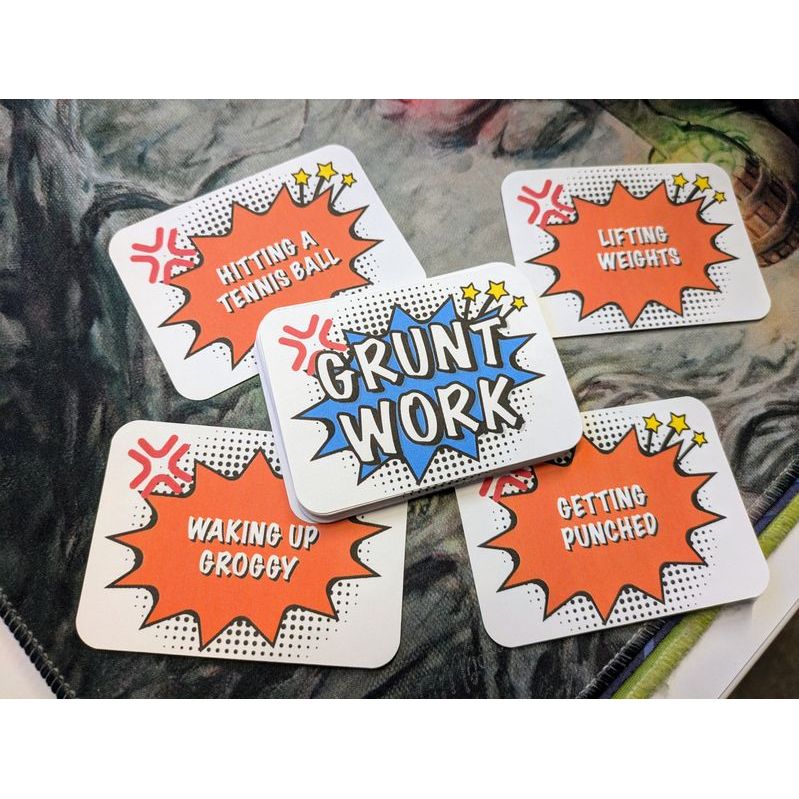 Each card is then revealed and read out loud one at a time. Players other than the grunter then must discuss and deliberate on which grunting noise was being made. Once the group collectively agrees, the grunter reveals whether the group was correct or not. Then a new round begins.