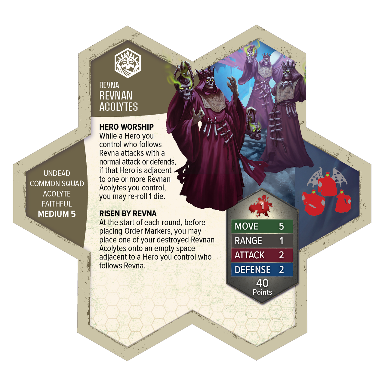 - Combine the abilities of the Revnan Acolytes and Grave Grim for a powerful, cohesive army centered on Revna’s dark dominion