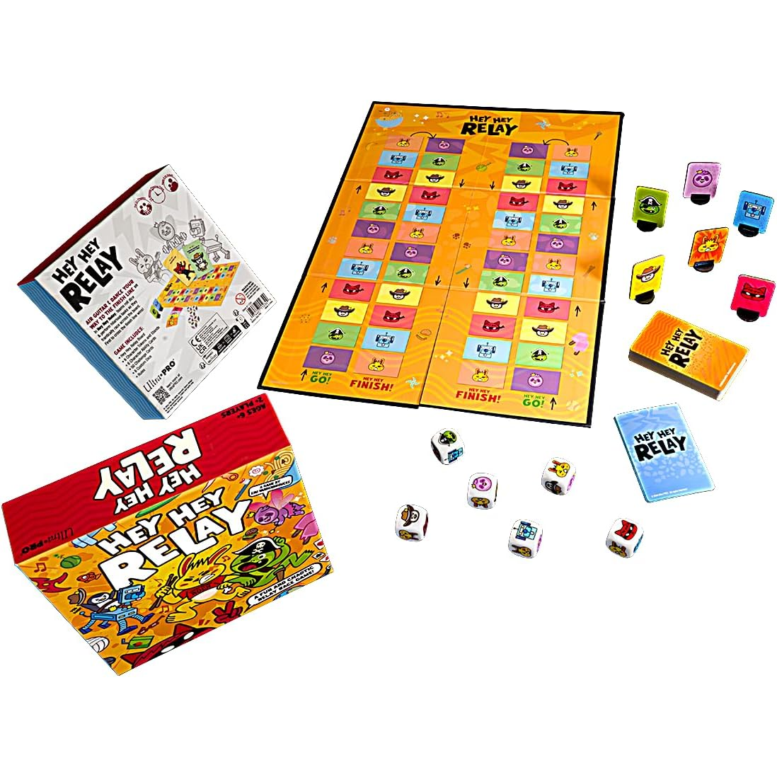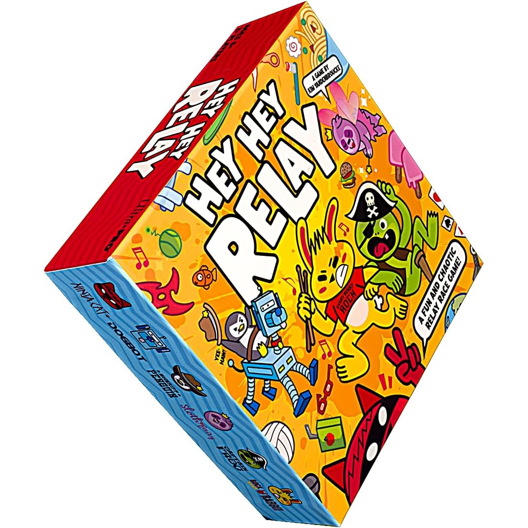 Air guitar and dance your way to the finish line! In Hey Hey Relay, teams roll dice and perform hilarious tasks as they frantically race across the board. First to cross the finish line wins.