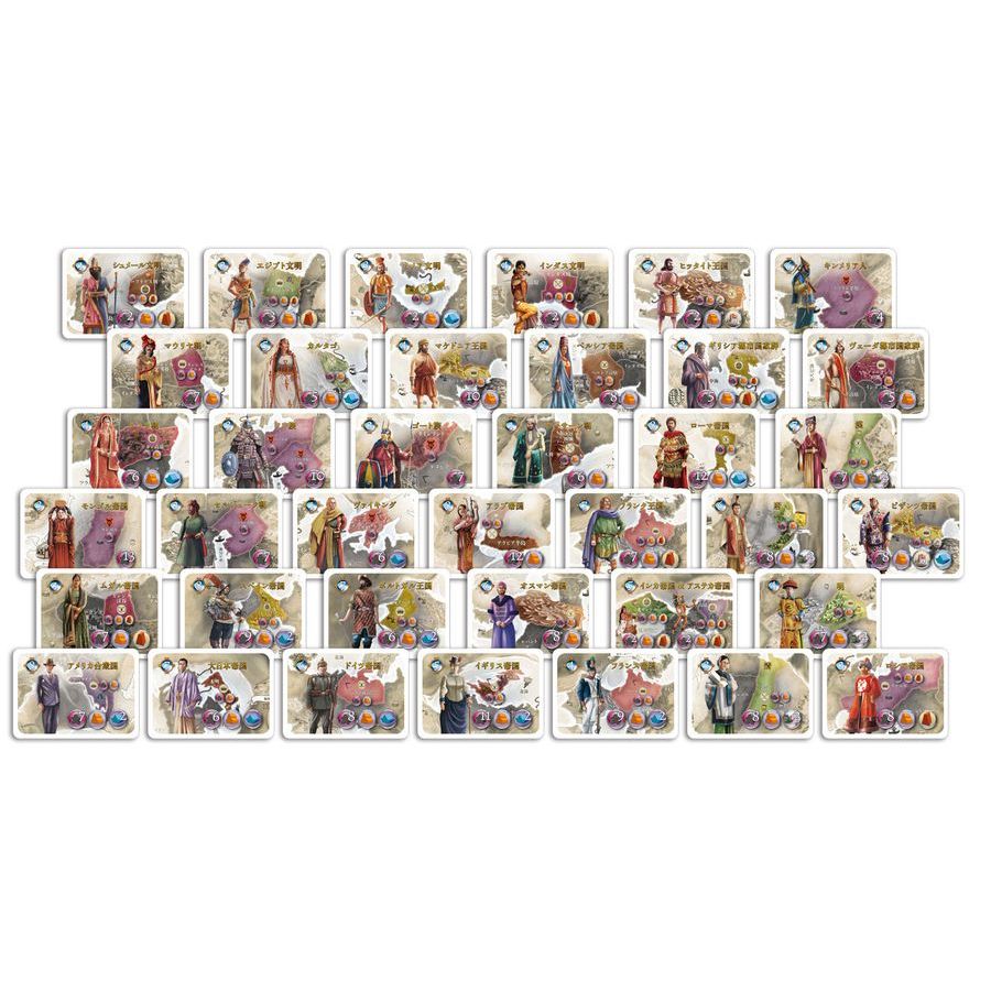 History of the World retells the story of humanity, starting from ancient Sumeria and ending with modern day USA. The map emphasizes those lands where civilizations flourished, with over sixty peoples featured on empire and event cards.