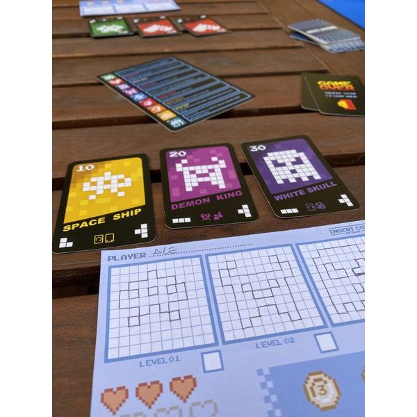 Each player chooses 3 cards and draws the shapes of the cards on the three boxes (Levels) of their GamePad. Be careful not to make mistakes when you draw them!