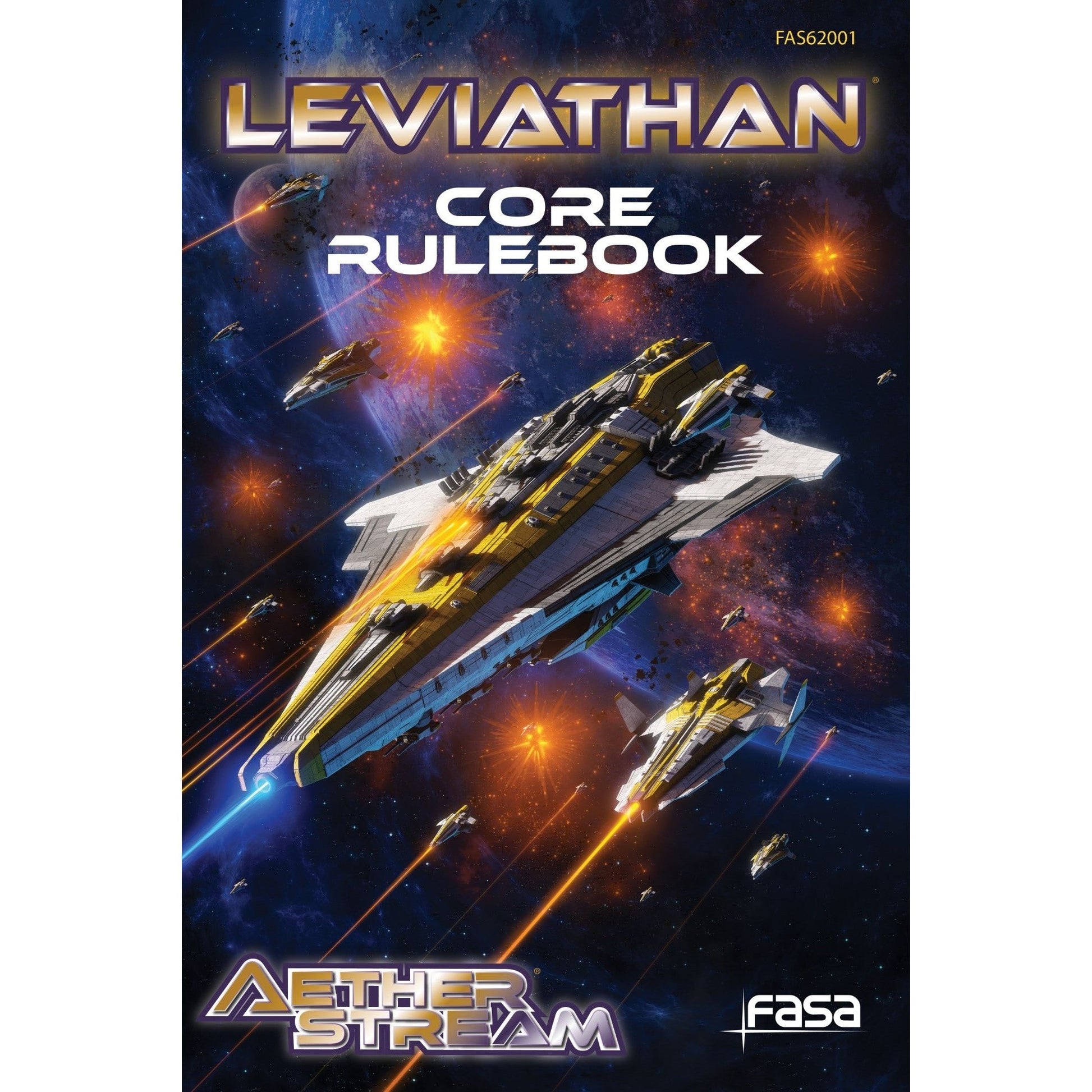 The Leviathan Core Rulebook is 236 full color pages of the rules needed to play Leviathan. Basic rules cover movement, attack and defense as well as power allocation. Separate chapters cover a full turn game play example, Fighters and Advanced optional rules.
