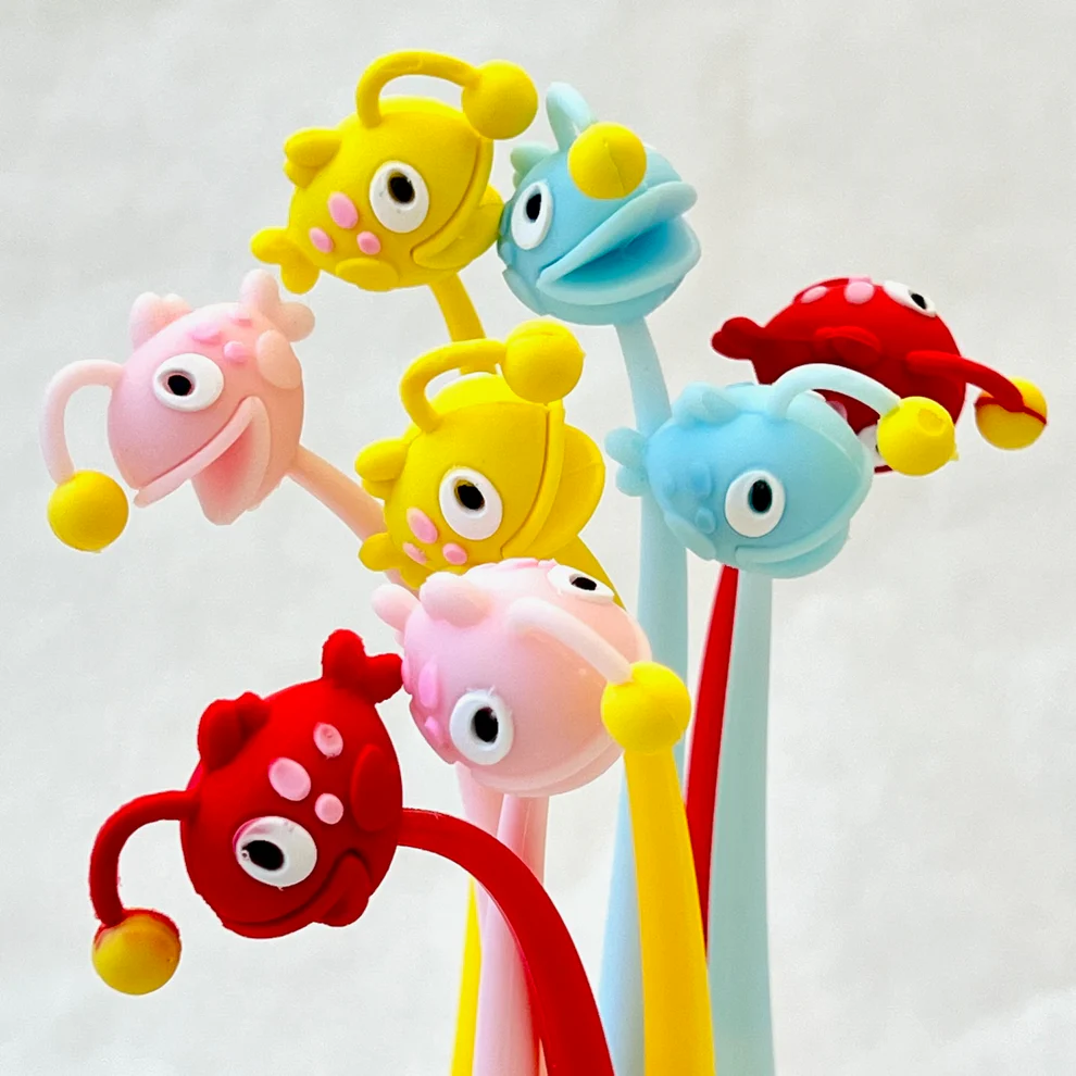 Smooth, fine tip black ink gel pen. Four variations, style chosen at random.