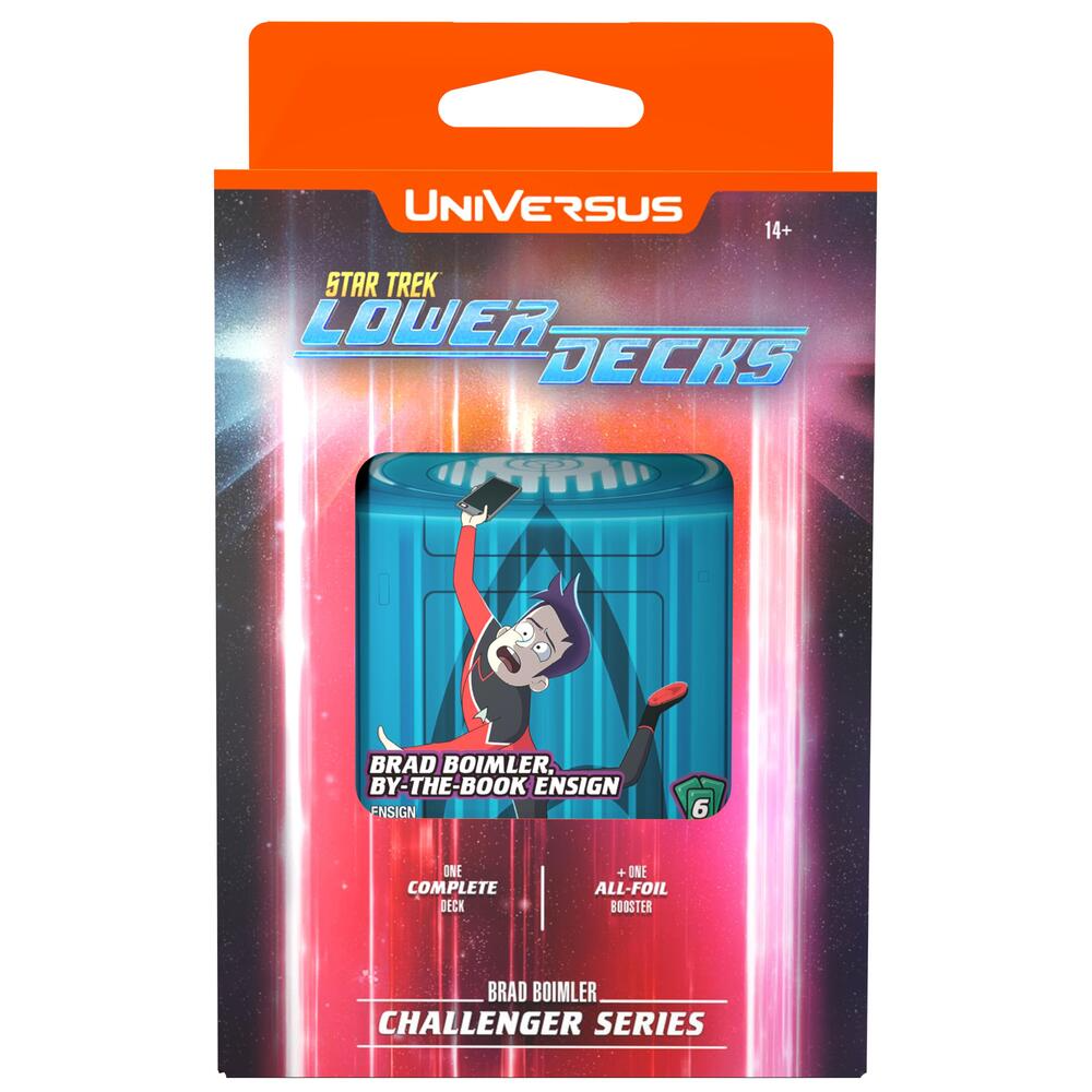 Join the lower-deck crew with the STAR TREK™ Lower Decks Challenger Series. These 60-card decks are ready to play right out of the box, featuring characters from the U.S.S. Cerritos: Mariner, Boimler, Tendi, and Rutherford. Each deck includes two different character cards of the featured character, a 6-card collector booster pack with alternate art or parallel foil versions of cards from the release, and a booklet with a card checklist and information for new players.