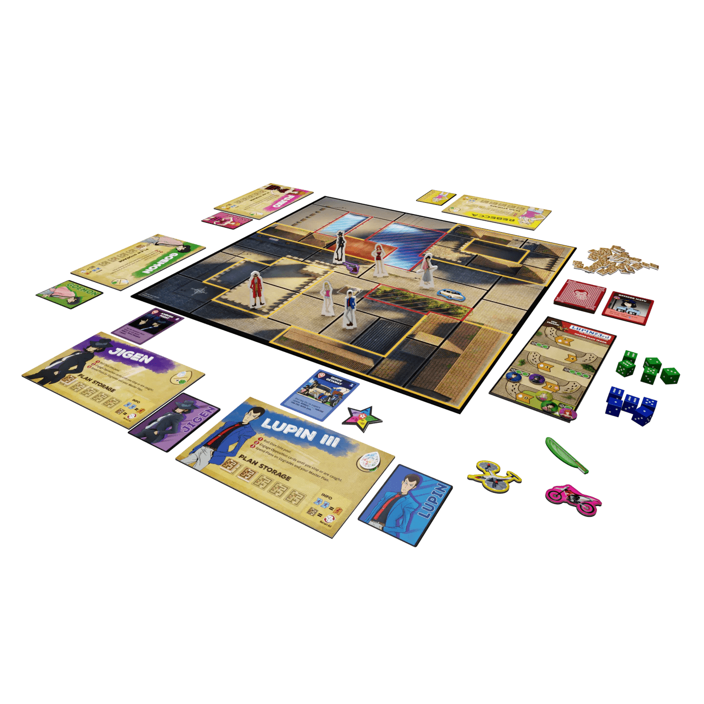 Each session feels like a new escape as you roll dice to strategize, confront unique Opposition cards, and unlock powerful upgrades with character-specific packs, acrylic standees, and collectible cards. The high-quality components, stunning artwork, and immersive playmats capture the pulse-pounding world of Lupin III, making every move feel like part of the story.