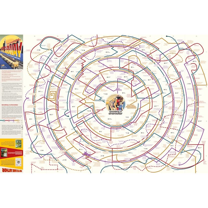MEANWHILE, IN THE SUBWAY is a setting for games such as Itras By, Troika or Electric Bastionland · A standalone game with its own system which requires a GM and 3 to 5 players, and can be played as a 2-hour one-shot adventure or as a longer campaign · A beautifully laid-out, double-sided, imaginary subway map you could proudly display in your living room You'll like this game if you enjoy atypical situations, whimsical adventures and thinking on your feet! The subway runs below the city; no map binds it and what happens in its hallways is never completely coherent. Each station is unique and a source of unexpected adventures. Each passenger, when met, turns out to be someone amazing. Sometimes, people leave the subway, bringing the memories and dreams of their stories with them… WHAT'S ON THE MAP? The 90 x 60cm map includes: · Random lists in the form of subway lines, with dozens to hundreds of stations to generate characters and weird adventure seeds · A game system based on the interpretation of one-word symbols, to introduce chance in your games rather than deciding whether actions succeed or fail · Advice on how to run the game, how to add your own content to it and how to insert it in your favorite setting |