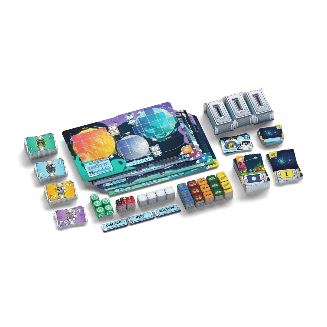 Through these cards, you'll manipulate the market, play intergalactic mini-games, and resolve universe-altering events. At the end, the player with the most money wins!