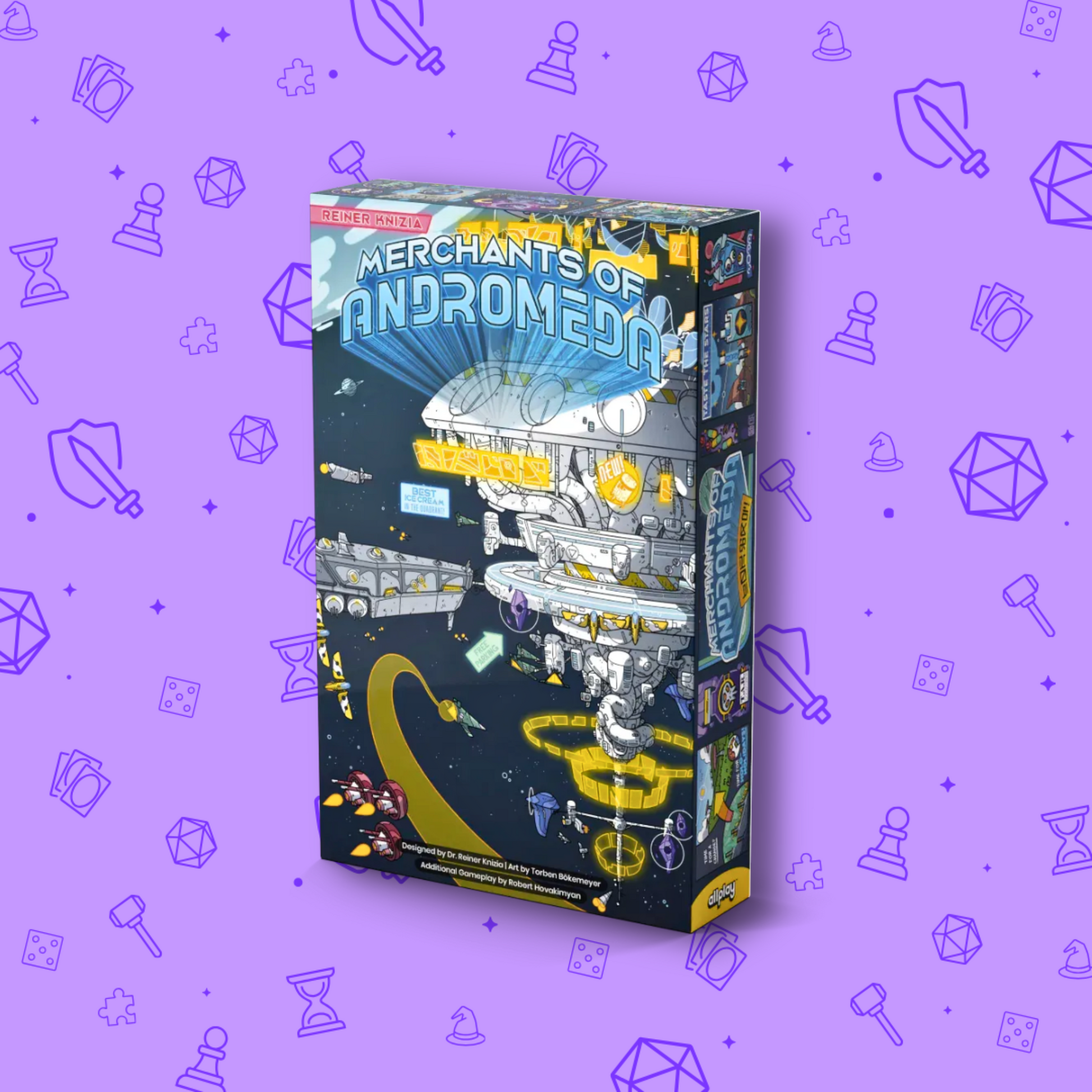 In Merchants of Andromeda, you’ll seek riches in a game of space politics—casting votes in the Senate, bidding on lucrative space goods, or resorting to ship combat!