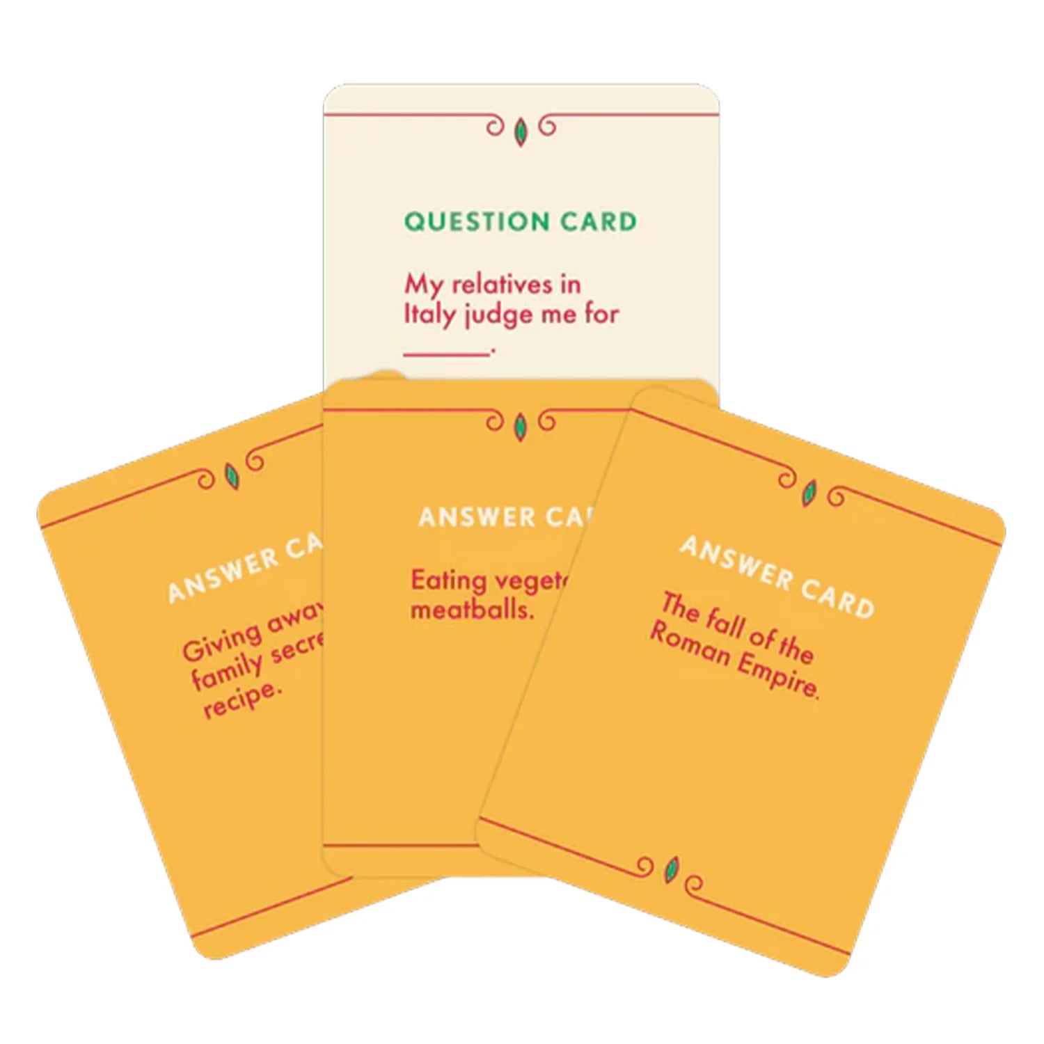 Written for Italians, by Italians, this game is perfect for all the pasta lovers in your life. One player picks a Question card. The other players choose an Answer card to match. The funniest answer wins!