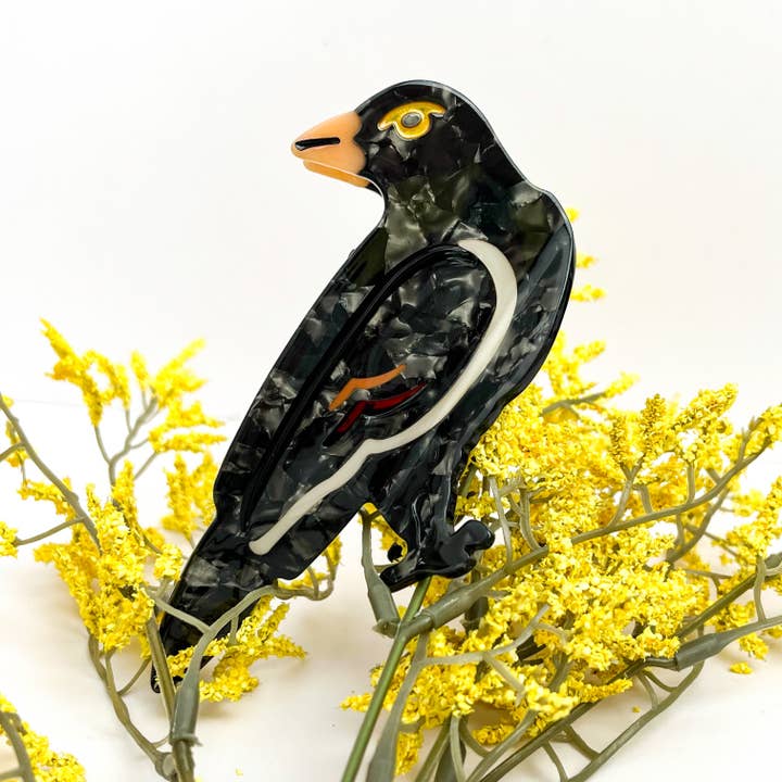 Evoke mystery and moonlit elegance with this acetate hair claw clip featuring a raven glancing back under a glowing full moon. With its sharp gaze and poised silhouette, this design captures the raven’s symbolic allure—intelligence, introspection, and transformation. Crafted from eco-friendly acetate, it’s lightweight yet secure, ideal for adding a touch of gothic charm or Halloween mystique to your look. A perfect piece for lovers of nocturnal creatures and poetic moods.