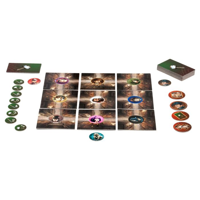 One player is Mr Jack, who is one of the 9 characters depicted on the tiles. The other player is the Investigator, who has 8 turns to unmask him, helped by 3 detectives moving around the board and “looking” at the streets in a row or column.