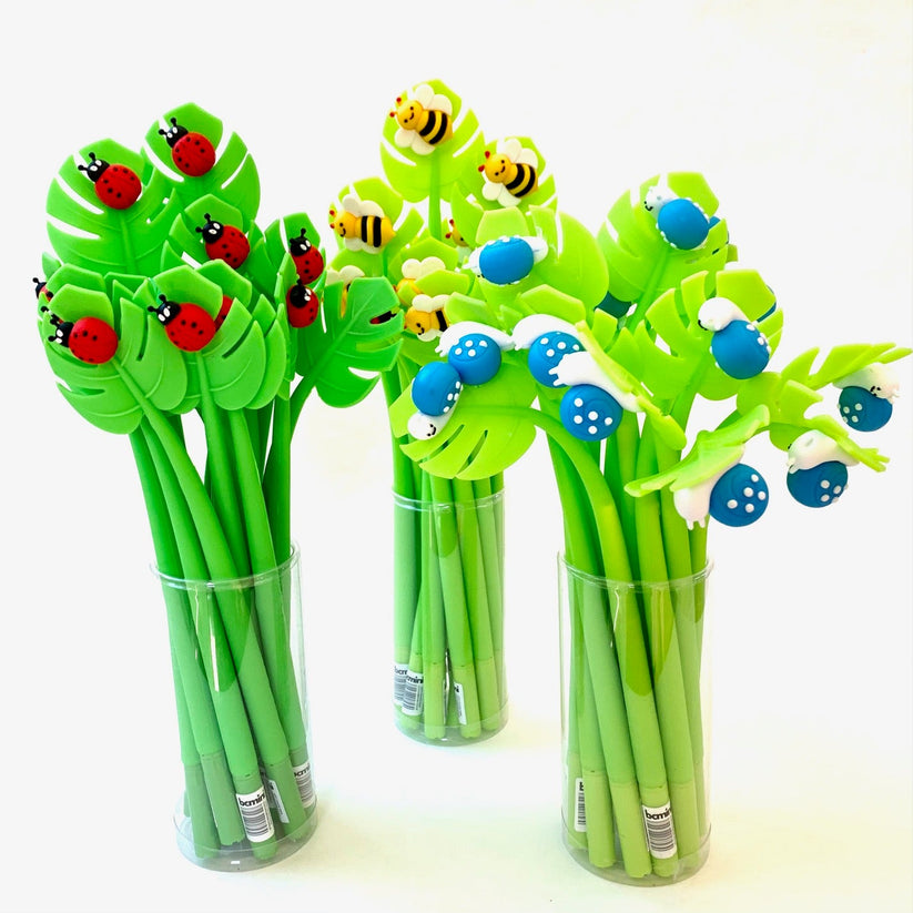 0.5mm black gel ink pen. Three variations, style chosen at random.