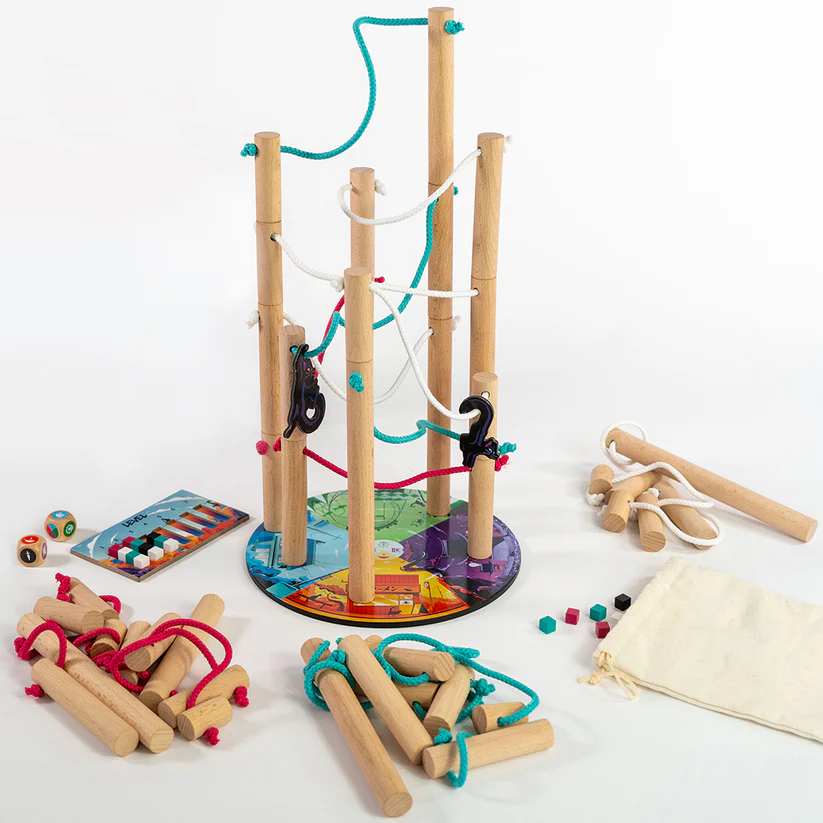 Challenge your friends and family to a game where strategy meets fun. Take turns placing or stacking the poles, making sure no cables are left hanging. But beware! Toppling the structure means defeat, and no one wants to be the clumsy cat on this island.