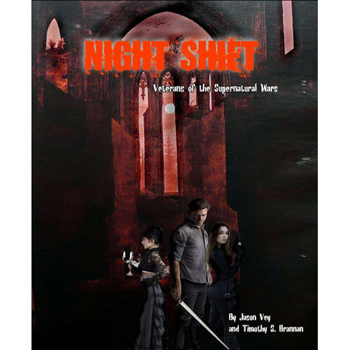 Night Shift: Veterans of the Supernatural Wars is an urban fantasy, horror, and dark modern supernatural game that uses classic and familiar mechanics combined with modern design sensibilities. It allows you to mimic all the tropes of just about any film, TV series, or novels you like, from cheerleaders chosen to slay vampires, to sisters imbued with the power of chosen witches to worlds where Fae of all manner battle in the politics of light and dark and more. The game uses the tropes of classic horror-based television, motion pictures, comics, and novels and allows you to customize your game with options for gritty, normal, and cinematic play styles. Inside you'll find full character creation, eight character classes; rules for magic, psychic powers, super science, and necromancy; a full bestiary; a GM's guide to help with world building and scenario design; optional systems for exorcism, sanity, fear and trauma, skills; and more. Designed by industry veterans Jason Vey and Timothy Brannan, this game brings together two noted designers with decades of combined experience to offer a fast playing, intuitive and fun system that brings a new face to urban fantasy and horror gaming.