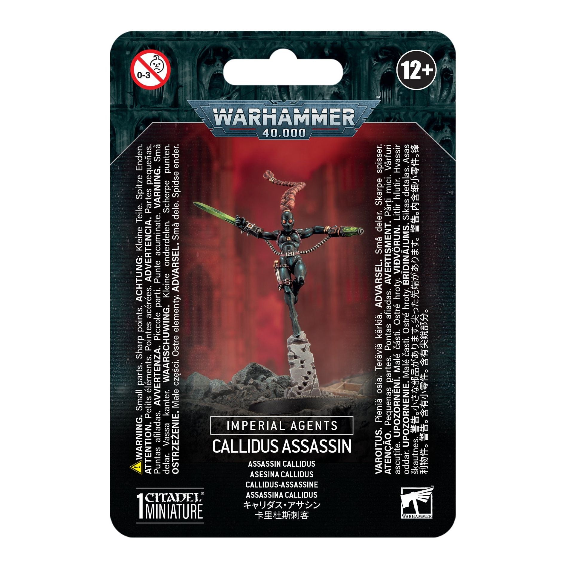 This multipart plastic kit builds a Callidus Assassin, a shapeshifting Imperial Agent deployed to undermine and eliminate enemies of the Imperium. Clad in a synskin bodyglove, the Callidus is an acrobatic killer armed with a C'tan phase blade and a neural shredder pistol, as well as a selection of poisoned blades strapped to their thigh.