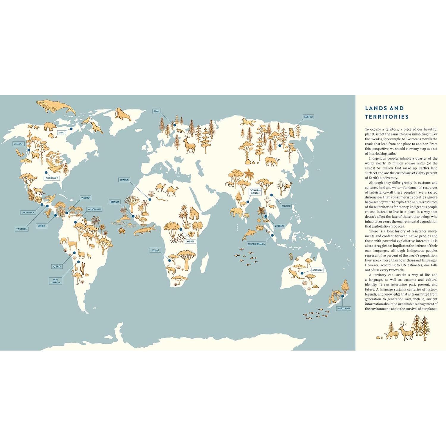 This is the core theme of this important book. Each double-page spread presents a contemporary and fascinating look at more than 20 Indigenous peoples from across the globe. These first nations were the first humans to inhabit their territories, which are under threat today from “civilization” that seeks to profit from them and their lands.