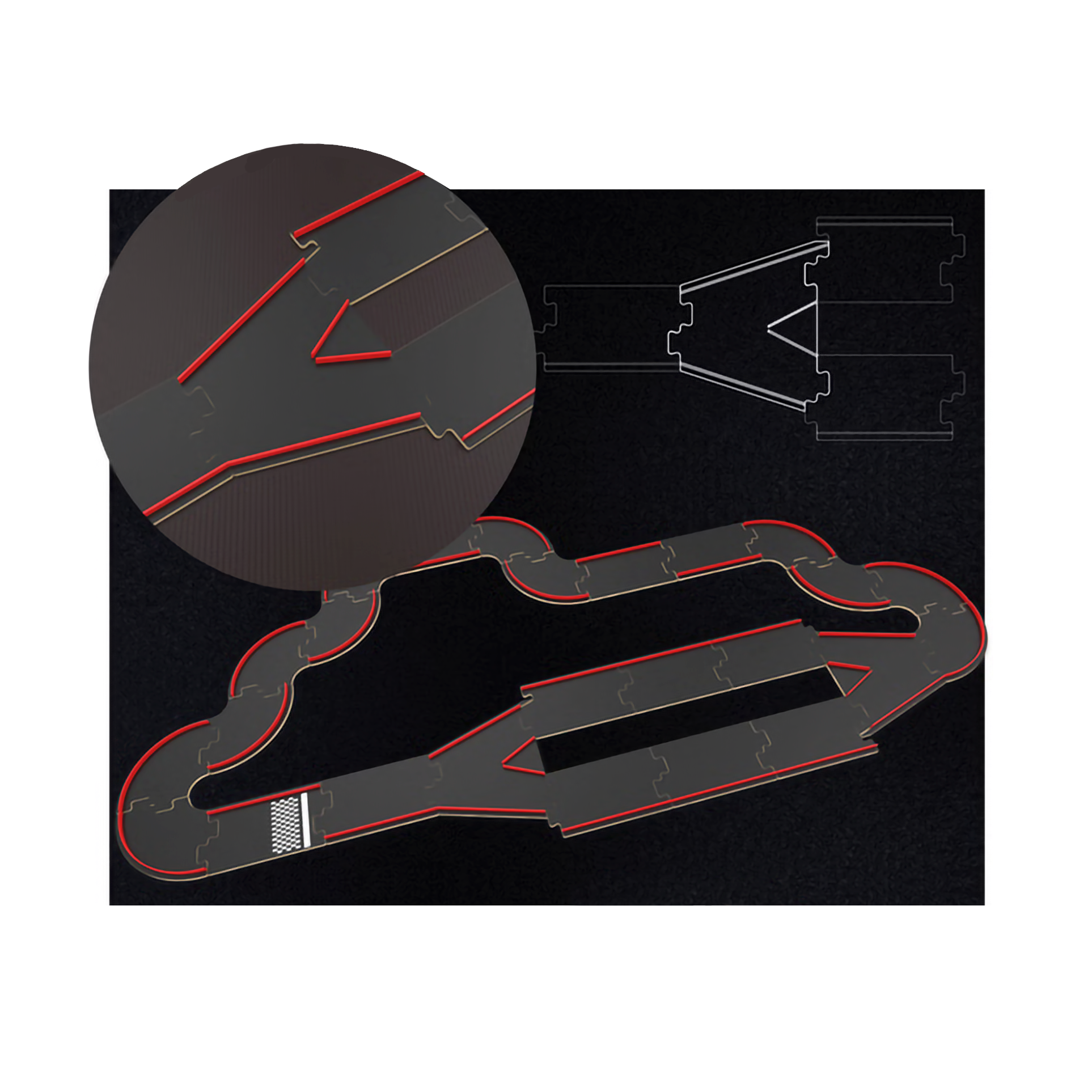 The Upsilon consists of two Y-shaped track components that split one track into two or combine two tracks into one. Use them as you wish!
