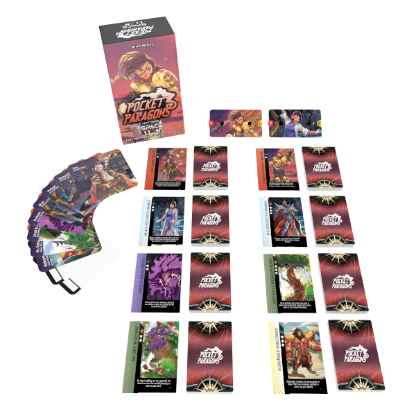 Lighting Fast Fighting Card Game! Pocket Paragons is a quick deceptively simple game of big spells and big reads. Take their HP down to 0 or deliver a carefully placed Execute to take your opponent out in an instant! This box features characters from Space Lion. Work in getting the perfect setup to get the edge on your opponent! Featuring 6 dramatically different characters.
