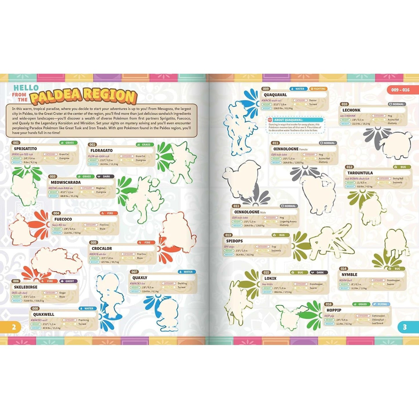 In this sticker book, you'll find friendly faces from all over Paldea, including the first partner Pokémon Sprigatito, Fuecoco, and Quaxly; the impressive Legendary Pokémon Koraidon and Miraidon; and even the mysterious Paradox Pokémon. There are hundreds of different stickers to find featuring Pokémon of all types, complete with vital information about each of them - and their name pronunciations, too!